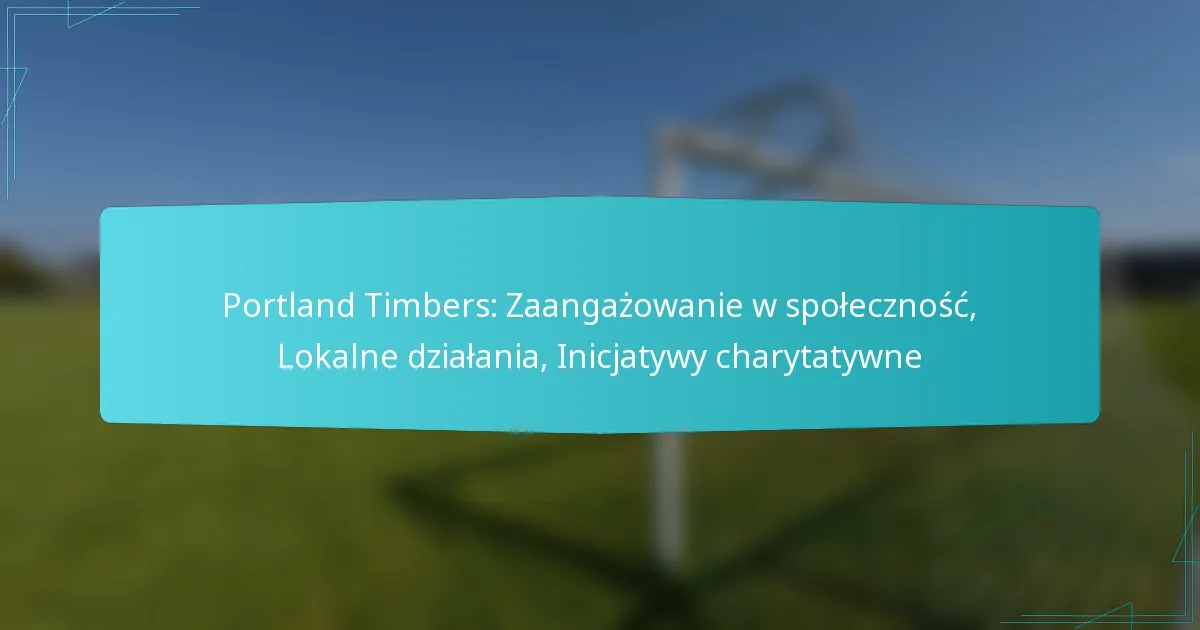 Portland Timbers aktywnie angażują się w społeczność poprzez różne inicjatywy mające na celu budowanie lokalnych więzi i wspieranie działań charytatywnych. Ich zaangażowanie obejmuje partnerstwa z lokalnymi organizacjami, programy piłkarskie dla młodzieży, uczestnictwo w wydarzeniach społecznych oraz znaczące statystyki, które podkreślają ich wkład.